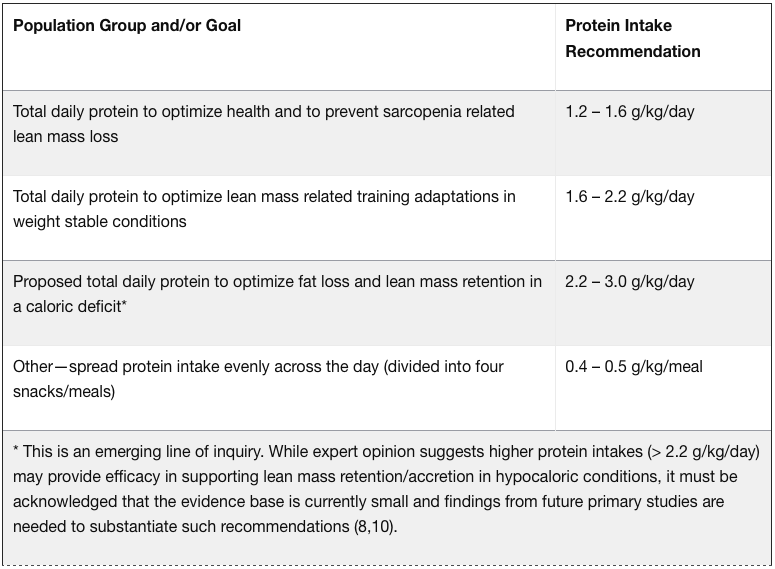 Those who want to be healthy, maintain a steady weight, and avoid muscle loss due to aging (sarcopenia) should focus on getting 1.2 g to 1.6 g of protein per kg of body weight.