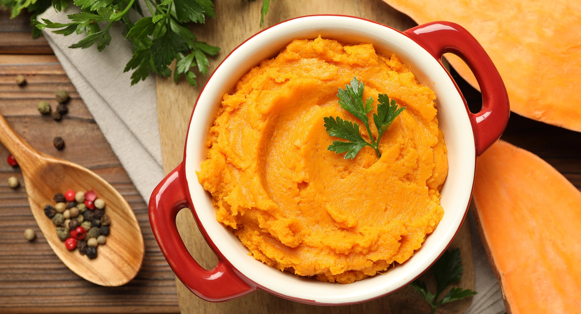 This creamy mash lets the natural sweetness of sweet potatoes shine, without the need for heavy cream or marshmallows. Loaded with vitamin A and complex carbs, sweet potatoes help support energy levels and immune function—perfect for powering through holiday plans (or a workout the next day). A touch of cinnamon and a splash of almond milk keep things cozy and light.