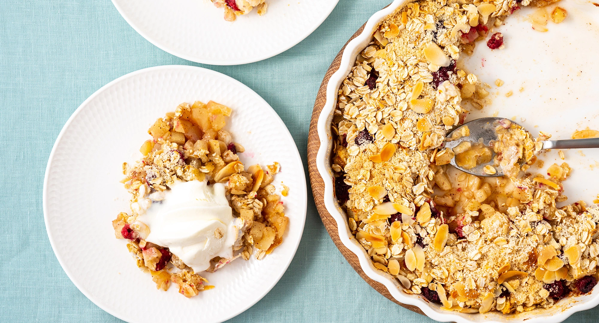 Warm, cozy, and just the right amount of sweetness. This crisp is everything you love about pie, minus the refined sugar and butter-heavy crust. Apples bring natural fiber and sweetness, while oats and almonds add texture along with healthy fats and complex carbs that help you feel more satisfied. It’s a feel-good dessert that fits right in with the rest of your holiday favorites.