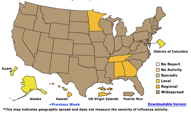 This year we are experiencing an intense flu season. In this map, you can see that it’s widespread across the country.