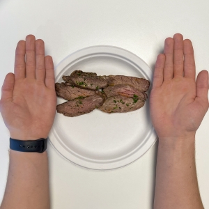 Male Portion: 40-60 grams per meal or two cupped-hand-sized portions.