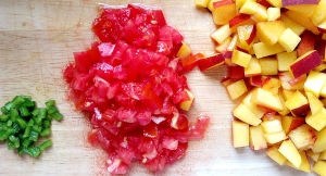 - Dice the peaches. We prefer a slightly larger dice to really showcase the flavor in the salsa.