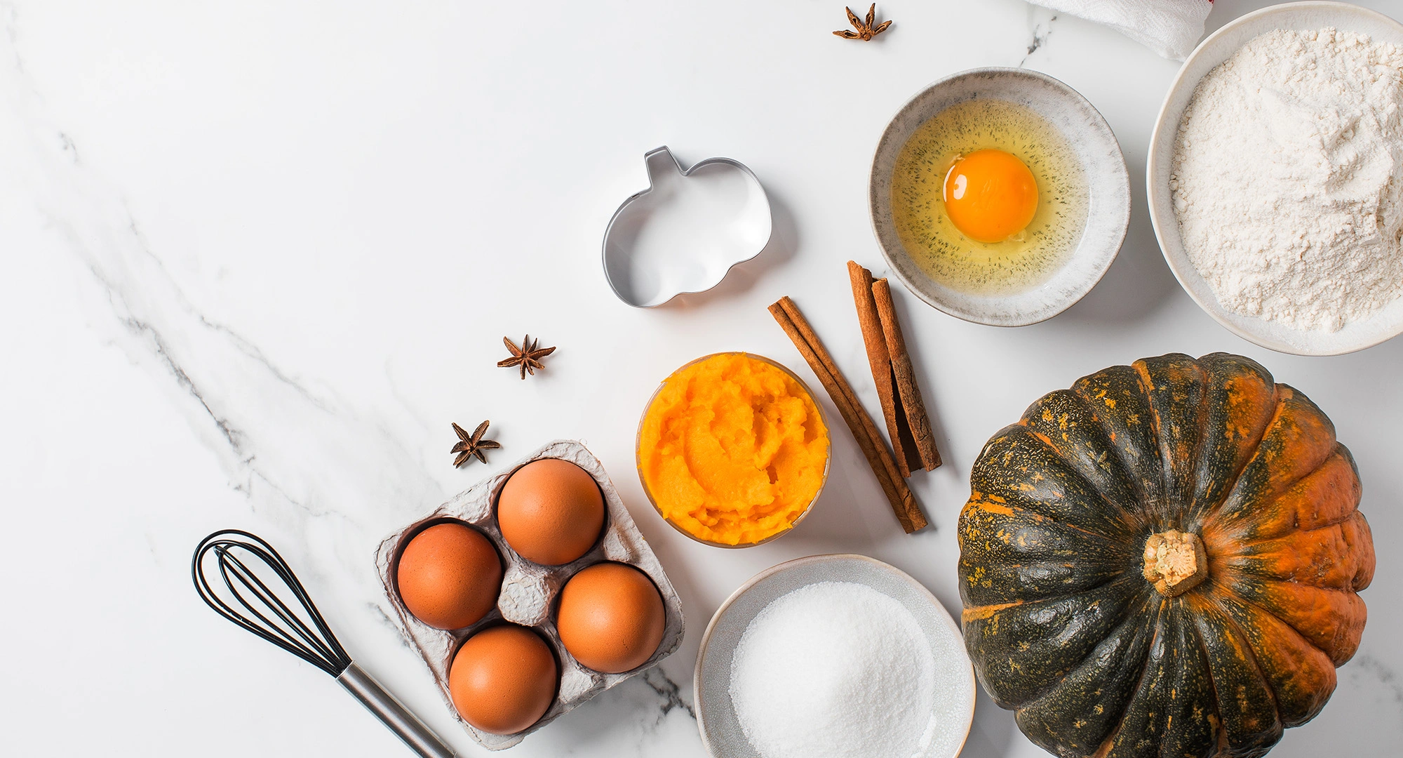1. Preheat the oven to 350°F. In a large mixing bowl, whisk together eggs, Greek yogurt, and canned pumpkin. Whisk until smooth.