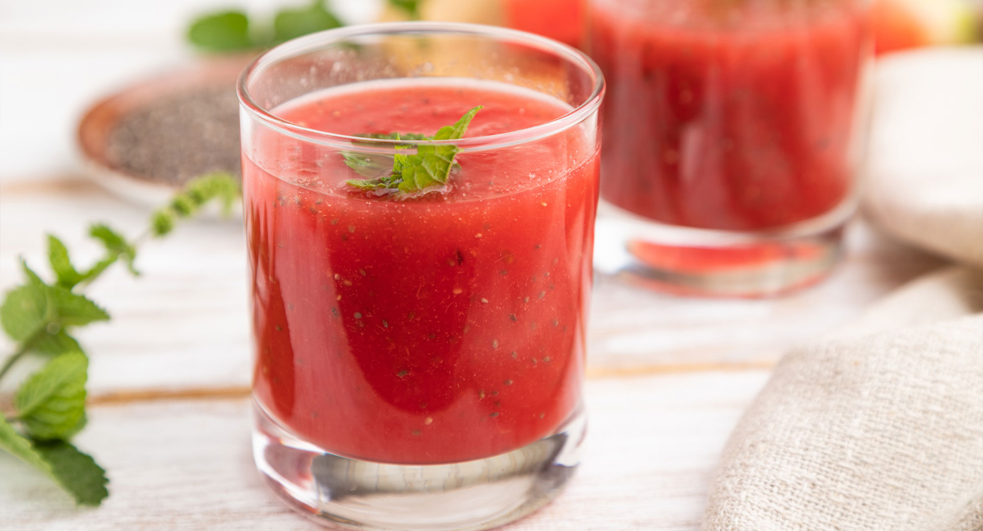- Pour evenly between two tall glasses and serve with a sprig of mint or a wheel of fresh lime.
