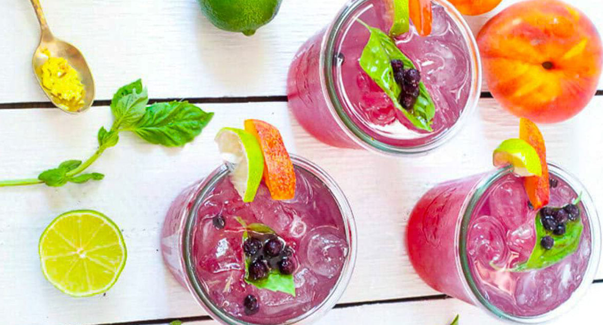 - Add more fresh blueberries and garnish with a slice of lime, peach, and more fresh basil leaves.