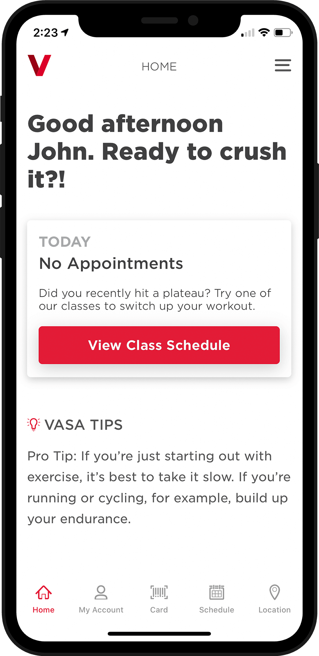1. Download the new VASA Fitness App from the App Store or Google Play